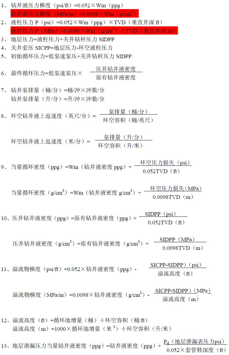 必看!井控常用計算公式