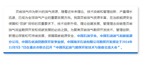 重磅!中國頁巖油氣勘探開發(fā)技術與裝備交流大會定于2024年11月5日-7日在重慶市召開