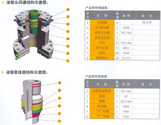 2、油管頭的功能 1)懸掛井內油管柱; 2)密封油管和套管的環形空間; 3)為下街套管頭,上接采油樹提供過渡; 4)通過油管頭四通體上的兩個側口,完成套管注入及洗井等作業 3、油管懸掛器 油管懸掛器是支承油管柱并密封油管和套管之間環形空間的一種裝置。油管懸掛器密封方式是油管懸掛器與油管連接利用油管重力坐入油管掛大四通椎體內而密封,便于操作,換井口速度快、安全,故而是中深井、常規井所普遍使用的方式。 我公司生產的油管頭四通完全符合API 6A要求,本體采用了鍛造或經過特殊冶煉的鍛件生產,承壓高,安全可靠。側出口有管線螺紋式和栽絲式兩種,栽絲式側出口加工有11/2LP內螺紋。