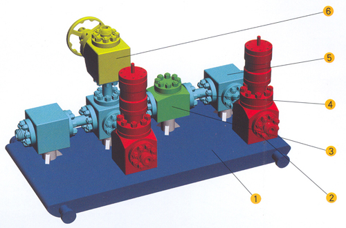 鹽城神華機械制造有限公司制造的JYGH-105試壓管匯裝置是液壓試驗的配置裝置,是成功控制壓力技術必要的設備。在試驗過程中通過試壓管匯的控制可得到不同的壓力效果。 一、主要規格及技術規范 公稱壓力:105Mpa 工作介質:水、油 工作濕度:-29℃~121℃ 公稱通徑:主通徑:Φ25mm(1″) 旁通徑:Φ25mm(1″) 連接形式:由壬連接 材料級別:EE 規范級別:PSL3 二、結構說明 本管匯的材料嚴格執行API Spec 16C和NACEMR0175標準規定。 該管匯是由手動平板閥一套、液動平板閥二套、四通、三通、法蘭由壬等組成。 三、維修保養 推力軸承采用鈣基潤滑脂,可在裝配時一次加滿,每次使用后,應檢查潤滑脂的消耗情況,并及時補充,若發現變質或污染,應立即更換。 每月要檢查一次閥腔內和密封脂數量,及時增補,以保證閥板與閥座間的潤滑,并保證密封的可靠性。 閥桿螺紋,根據使用情況,可單獨加潤滑油。 若閥桿密封處泄露,可通過閥蓋上的密封塑注入閥注入密封脂,當泄露嚴重時,要更換填料。 裝置拆下停用后,要全面清洗和檢查,特別是平板閥,應將閥板和閥蓋、閥座、閥腔內拆洗干凈,有嚴重磨損的零部件,要進行修理和更換,閥腔內的密封脂應更換,并重新填滿。